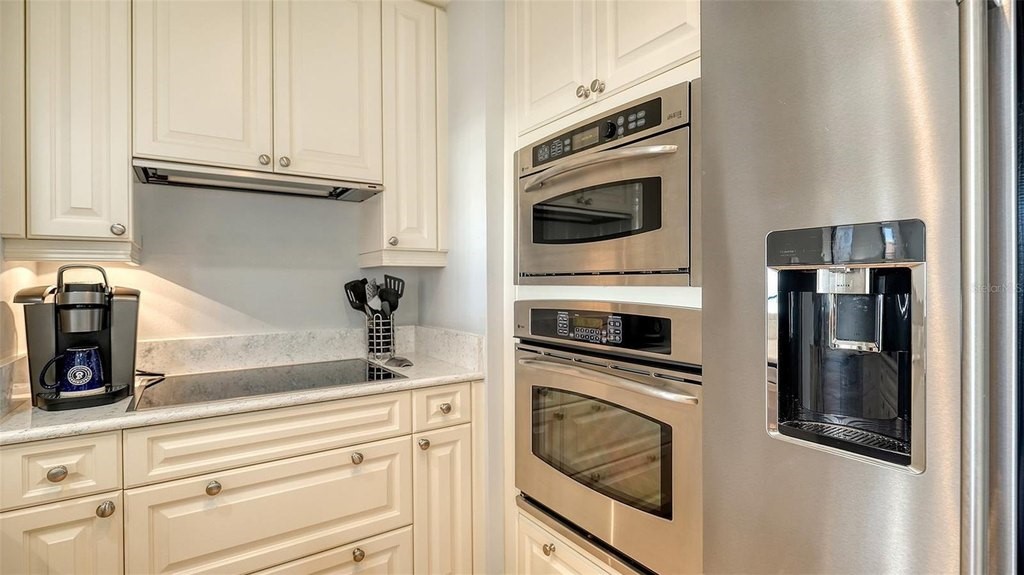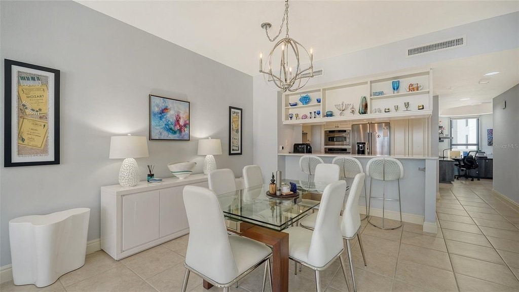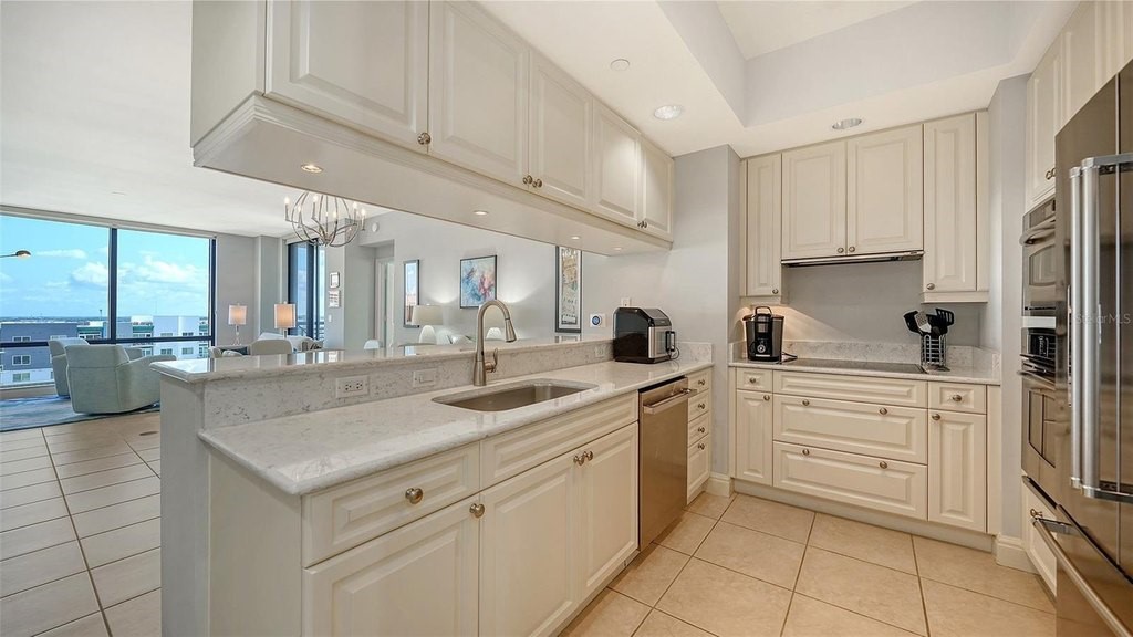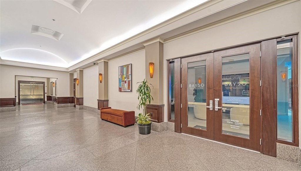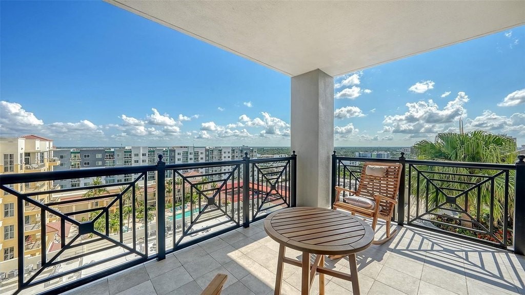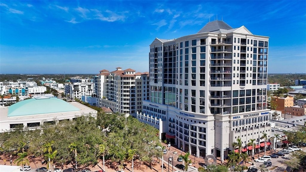 Lavish boutique living in the heart of Downtown Sarasota awaits at the Plaza at Five Points. This tastefully updated, turnkey 2-bedroom, 2-bath condo residence, with a covered lanai/balcony, offers city living with refined style and comfort. A spacious entry foyer with a dedicated office nook provides a practical and welcoming first impression—ideal for year-round living or a stress-free seasonal retreat. The kitchen features sleek quartz countertops and newer, high-quality appliances. The primary en-suite bedroom showcases beautiful city views, a California-style walk-in closet, and access to the private lanai. The guest bedroom is generously sized and offers equally charming downtown vistas. The lanai is accessible from both the living room and the primary bedroom, providing a seamless indoor-outdoor flow. Additional features include two deeded garage parking spaces conveniently located near the lobby, and a private storage room. Building security includes controlled access at all entry points and elevators, ensuring peace of mind. Enjoy an elevated lifestyle with luxurious amenities including front desk concierge service, front desk steward, valet parking, rooftop heated pool and spa, outdoor grilling area, cabana with gazebo, a well-equipped fitness center, community room with catering kitchen and fireplace, conference room, and a guest suite available for weekly reservations. Step out of your lobby into Sarasota’s vibrant arts and entertainment district. Just a short stroll to the Sarasota Opera House, theaters, live music venues, art galleries, eclectic shopping, and top-rated dining. Whole Foods is around the corner for added convenience. The Bayfront and Marina Jack are just minutes away, offering a variety of boating and waterfront activities. Easy access St. Armands Circle, Lido Beach, Longboat Key, and world-renowned Siesta Key Beach. The Sarasota-Bradenton International Airport, Selby Botanical Gardens, Van Wezel Performing Arts Center, and the Asolo Repertory Theatre are all within a short drive. The building performs like a champ during hurricanes and storms. Residences with this floor plan in ‘The Plaza at Five Points’ are rarely available—schedule your private or virtual showing today. Vacant and easy to show.